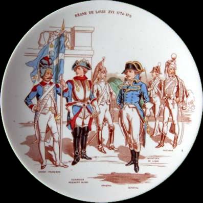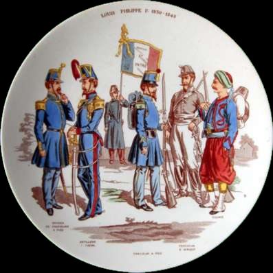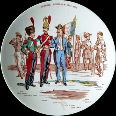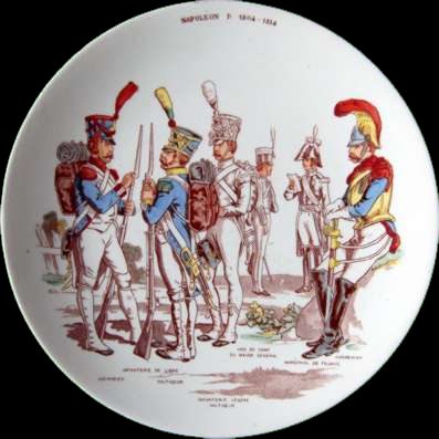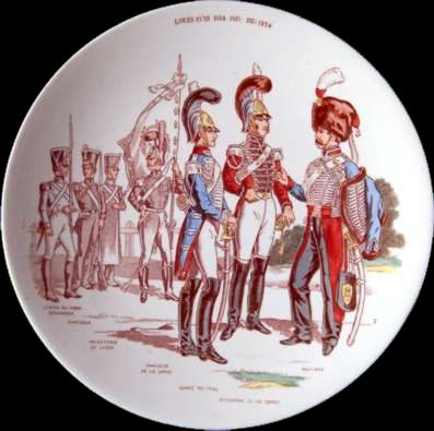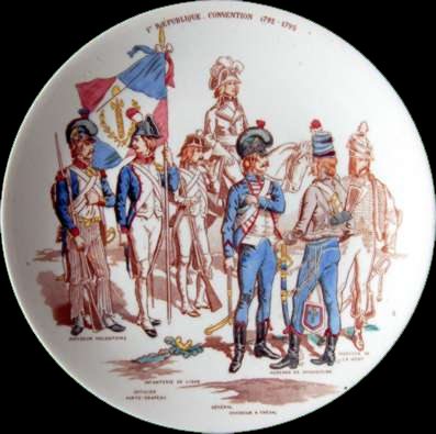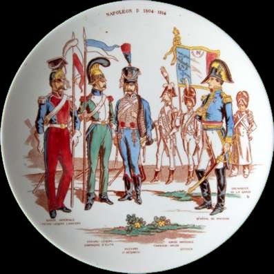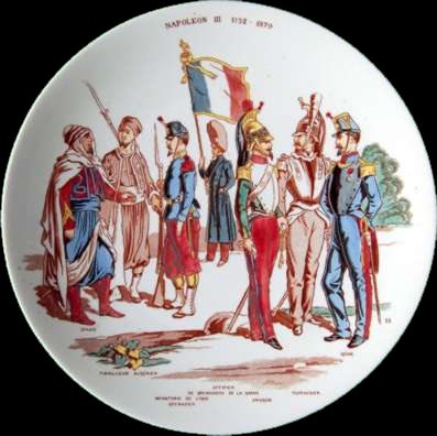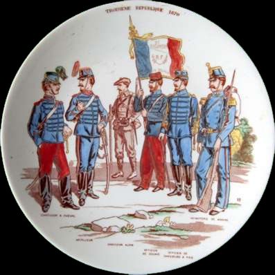 Cette fin du 19e siècle voit la montée du nationalisme et de l’esprit de revanche en France. La faïencerie de Sarreguemines dont la francophilie de la direction est bien connue participera au développement du phénomène, entre autres par l’édition de séries de 12 assiettes décoratives qui exaltent le patriotisme français. Des séries monochromes mais aussi de très belles séries polychromes dont les uniformes de l’Armée française que nous avons choisi de présenter ce mois-ci.