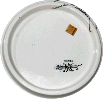 Cette "coupe 30", comme indiqué sur la page de carnet de décors tenu par Georges Herrmann, est un plat de forme lentille avec talon trapézoïdal comprenant 2 trous pour l'accrochage. Nous sommes donc bien en présence d'une pièce décorative et non pas d'un plat de service.