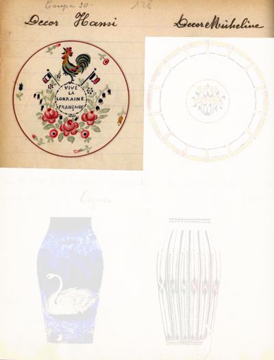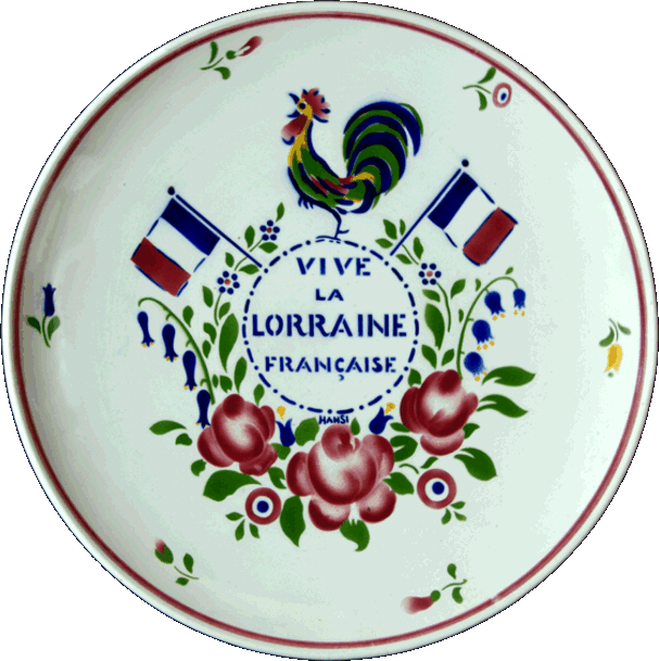 C'est en 1921 que Jean-Jacques Waltz dit "Hansi" a commencé à travailler avec la faïencerie de Sarreguemines et la toute nouvelle sociétè S.D.V. pour l'élaboration du service "Hansi Annales" dont il a créé les décors.
