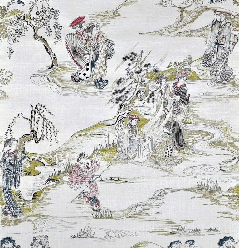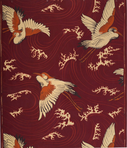 Européens et les Américains découvrirent, par l'intermédiaire des collections rapportées du Japon et présentées lors des Expositions universelles, un art qui n'avait d'équivalent ni dans les sujets représentés, ni dans leur mise en oeuvre dans les différentes techniques des arts décoratifs. Si l’influence de la culture japonaise sur le développement des Arts and Crafts, de l'impressionisme et de l'Art nouveau a été étudiée, aucune synthèse n'a concerné encore le domaine spécifique du papier peint. Les manufactures développent dès les années 1870 une imagerie d'objets convenant aux clients avides d'exotisme, mêlant souvent des références à l’art chinois et japonais. Éventails et emblèmes héraldiques, chrysanthèmes et pins, grues et hérons, mont Fuji, pagodes et kakemonos parsèment les lés de papier peint comme ils investissent le textile et la céramique.