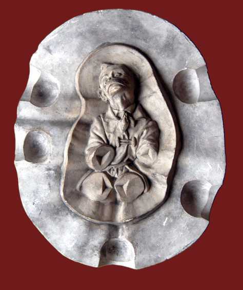 Le coup de cœur de ce mois est un élément de "moule mère" permettant de créer le pot à tabac n° 231 dit aussi "pot à tabac singe". Cette pièce a été produite en Grès, grès doré, en majolique puis plus tard en "dégradé sur émail". La création du sujet selon son n° d’ordre peut être estimée vers 1865/1870.