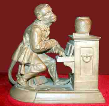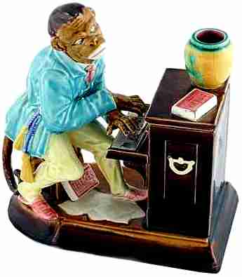 En dessous à gauche la "version grès" et à droite la "version majolique" du "pot à tabac singe" musicien.