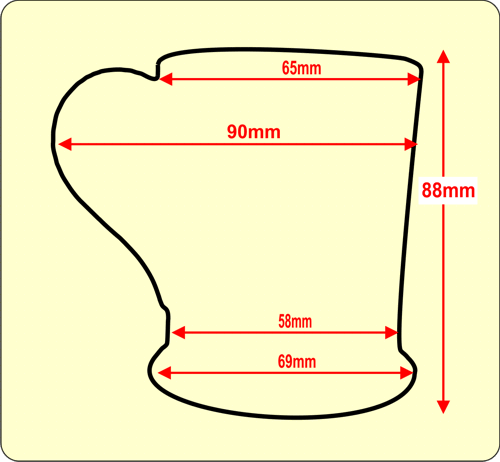 Le catalogue de 1892, la présente comme étant une "canecas lizos". Chose étrange elle est là enregistrée sous son nom portugais. Les lusophones auront immédiatement traduit "chope Lizos". Cette pièce est dite produite en 7 tailles, de 6 à 12 de contenance de 0,57l à 0,09l. Celle présentée ici est (selon sa contenance) de taille 11.