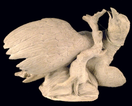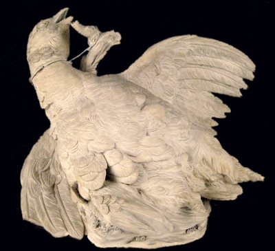 Sa marque ou plutôt ses marques de fabrique, C 00 (Utzschneider en creux) et C 01 (Sarguemines en creux) situent sa production vers 1805/1810. Ce qui en fait son intérêt est tout d'abord, la matière qui la constitue : .un grès blanc et mat très fin qui a la propriété de faire ressortir les détails du plumage, et la qualité d'exécution ensuite qui montre une grande maîtrise de la manipulation de moules complexes.