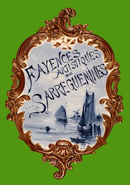 La mention "Fayenceries artistiques de Sarreguemines" semble indiquer qu'il s'agit-là d'un objet destiné à la "réclame", pour une exposition ou le magasin d'un important revendeur de céramiques sarregueminoises.