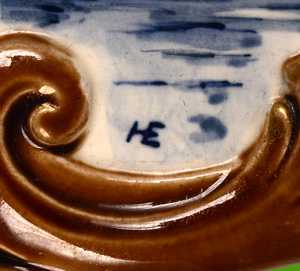 Surprenante la signature de l'artiste que l'on retrouve pratiquement à l'identique sur une coupe produite après la Seconde Guerre mondiale à l'Atelier du Revernay (Digoin) !