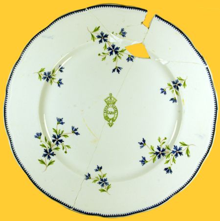 au sud de la capitale égyptienne, qui recollés reconstituent (en grande partie) une assiette plate de forme Rouen et de taille 2, décor "Barbeau".