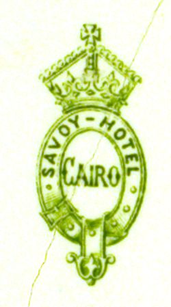 de l'hôtel Savoy du Caire (inscription en anglais : Savoy hotel Cairo)