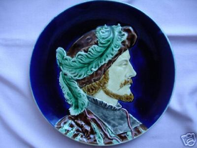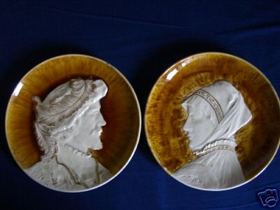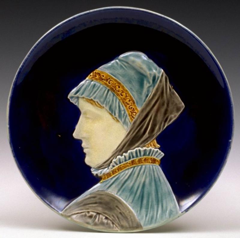 Description : Décor en léger relief d une femme habillée en costume Renaissance