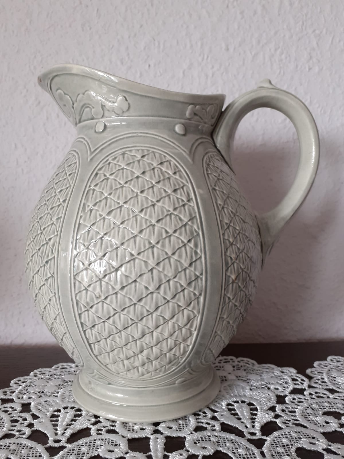 Objet No : 1263 Cruche écailles (I à V)Existe en : Majolique - Bronze - GrèsDescription : poids I : 1950 gr poids V : 540 grpoids II : 1480 grpoids III : 1060 grpoids IV : 770 gr