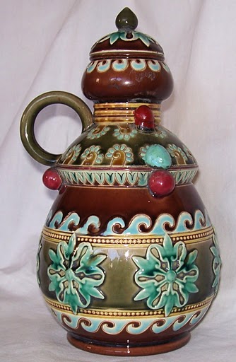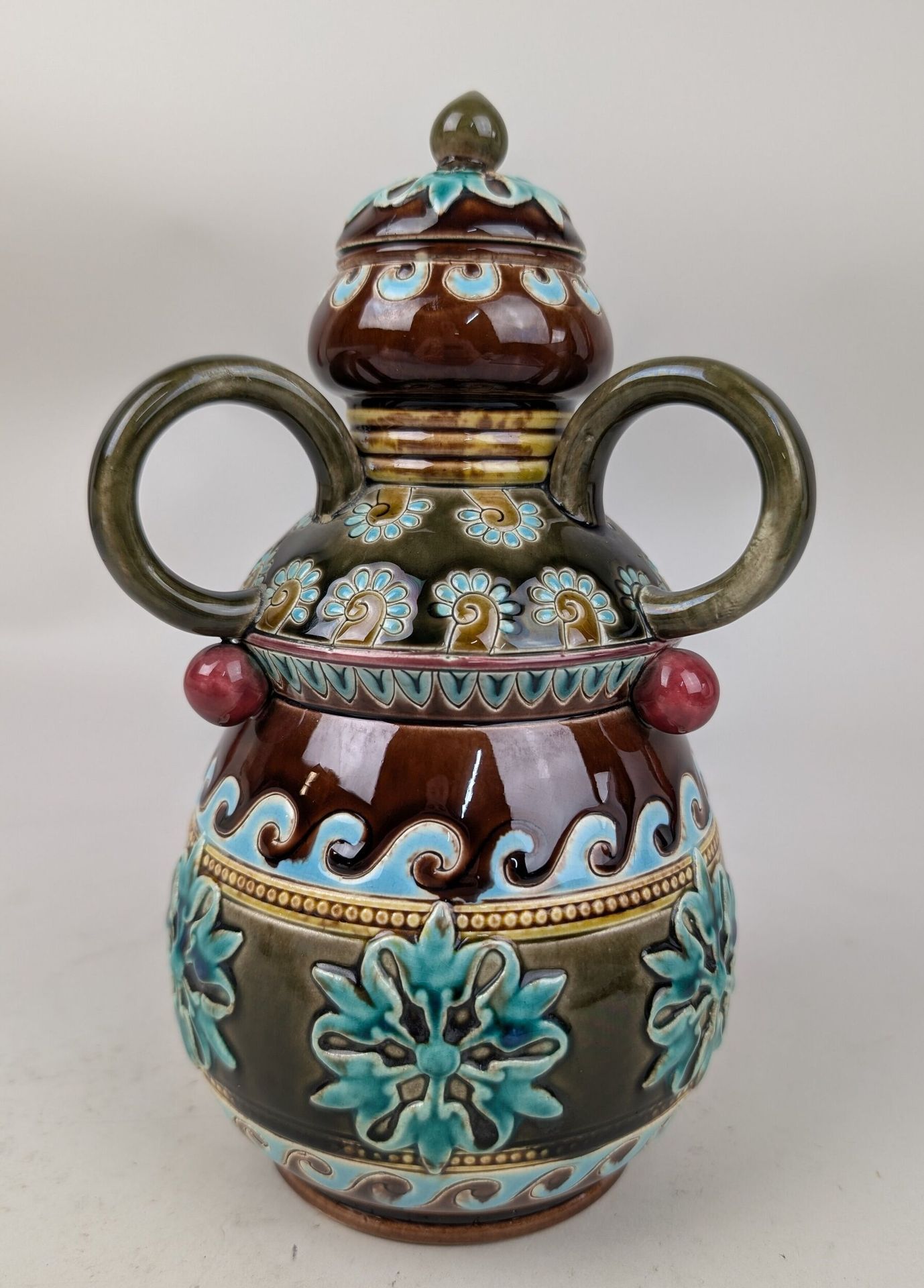 Objet No : 1373 Vase 3 anses / Burette 3 anses et couvercleExiste en : Majolique