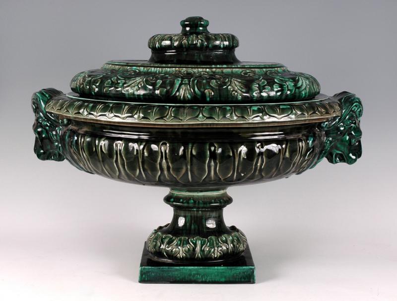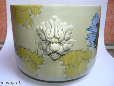 Objet No : 678 Cache-pot cylindrique à MascaronsExiste en : Lithochromie - Majolique - ChinaDescription : décor Japon