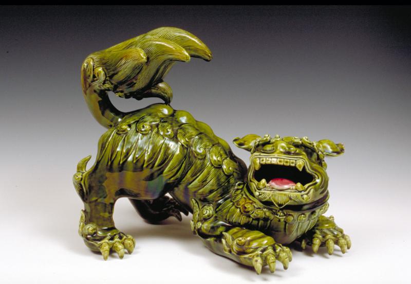 Objet No : 719 Chien chimère côté droitExiste en : Majolique - BronzeMarques : 1212 et 1 aCouleurs : vertvertPate : majoliqueDates : ± 1880