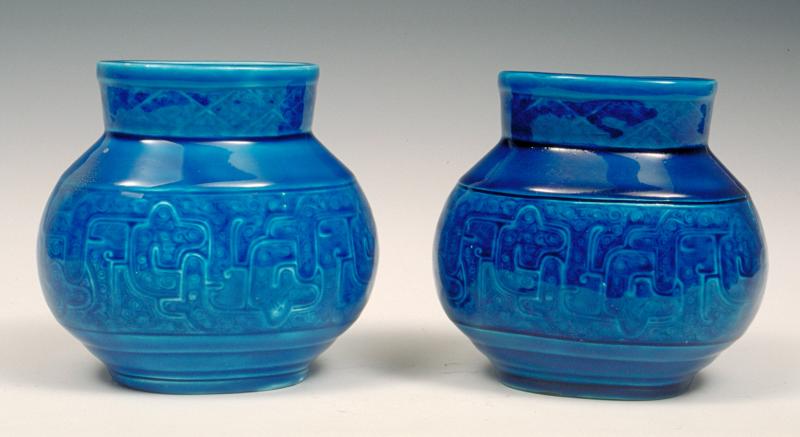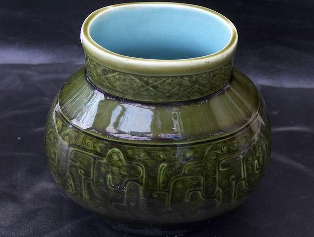 Objet No : 740 Laitière / Pot ovale à méandresExiste en : Majolique - Bronze - Lustre diapréMarques : 1 B et 12