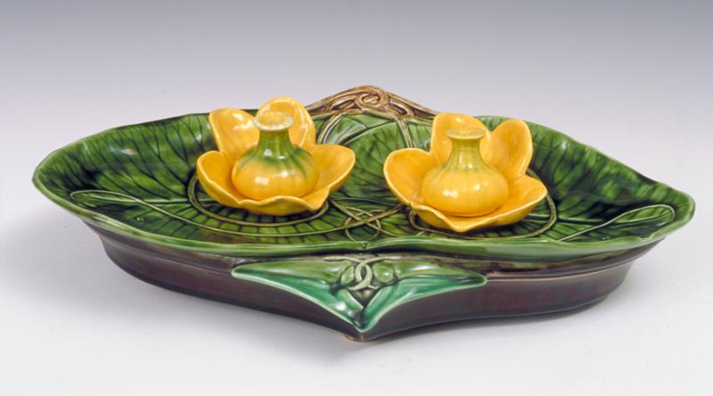 Objet No : 805 Ecritoire NénupharExiste en : Majolique Marques : 1 B 1 ACouleurs : polychromePate : majoliqueDates : ± 1880