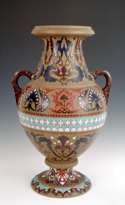 Objet No : 832 Vase / Carreau ElisabethMarques : I d1 ADécors : émaux cernésdécor gravé et émauxdécor gravéCouleurs : polychromepolychromepolychromePate : majolique-grès-grès émailléDates : ± 1880± 1880