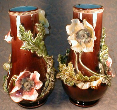 Objet No : 848 Vase flacon avec fleursExiste en : China - ModelageMarques : 1 ADécors : arabesquesCouleurs : vertPate : majoliqueDates : vers 1890