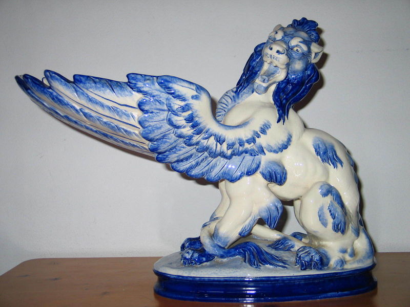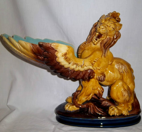 908 1 Coupe Lion chimère Cruche chimère majolique