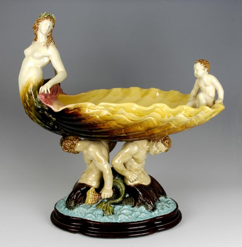 Objet No : 911 Coupe Sirène milieu de table (supprimé)Existe en : Majolique - IvoireMarques : 1 ADescription : Supprimé le 14.3.08